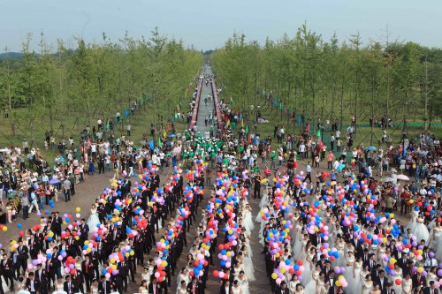 9月19日,以“緣系千秋·情定揚州”為主題的“揚州2500周年城慶今世緣集體婚禮”,在揚州瘦西湖畔的宋夾城體育休閑公園盛大舉行。中外258對新人身著(zhù)西式婚紗禮服,在2500歲古城的見(jiàn)證下喜結連理。