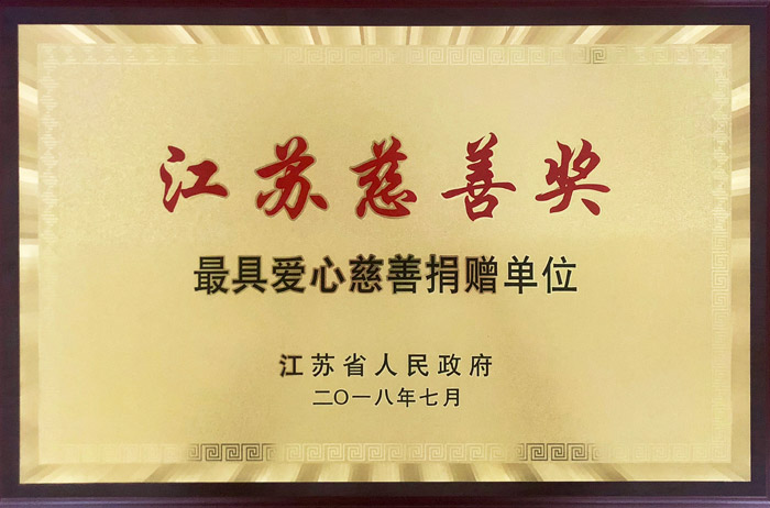 公司榮獲“江蘇慈善獎·最具愛(ài)心慈善捐贈單位”榮譽(yù)稱(chēng)號