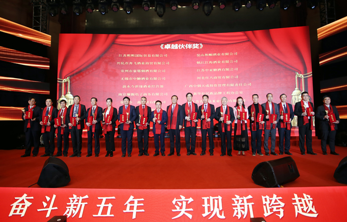 會(huì )上,羊棟宣讀了《關(guān)于表彰2018年度優(yōu)秀合作伙伴的決定》,并舉行了頒獎儀式。江蘇熙熙國際貿易有限公司等18家公司被授予“卓越伙伴獎”,南京上尚酒業(yè)有限公司等20家公司被授予“精誠合作獎”,徐州月緣商貿有限公司等10家公司被授予“國緣品牌銷(xiāo)售突破獎”,盱眙縣新興商貿有限公司等10家公司被授予“今世緣品牌提質(zhì)增效獎”,盱眙舜韜商貿等5家公司被授予“高溝品牌復興推廣獎”,南京市溧水區豐碩酒業(yè)經(jīng)營(yíng)部等30家公司被授予“市場(chǎng)拓展獎”,淮安市清江浦區胡氏超市等10家加盟店被授予“優(yōu)秀加盟店獎”,上海竭立實(shí)業(yè)有限公司等2家公司被授予“優(yōu)秀電商獎”,云酒頭條等5家行業(yè)媒體被授予“優(yōu)秀傳播獎”,江蘇華宇印務(wù)有限公司等5家公司被授予“優(yōu)秀供應商獎”,華泰紫金投資有限責任公司等5家公司被授予“優(yōu)秀投資機構獎”。胡躍吾作今世緣酒業(yè)2019年度營(yíng)銷(xiāo)工作報告。與會(huì )人員一同觀(guān)看了《今世緣酒業(yè)2018巡禮》專(zhuān)題片。前方各營(yíng)銷(xiāo)中心、辦事處經(jīng)理,后方各部門(mén)負責人參加會(huì )議。