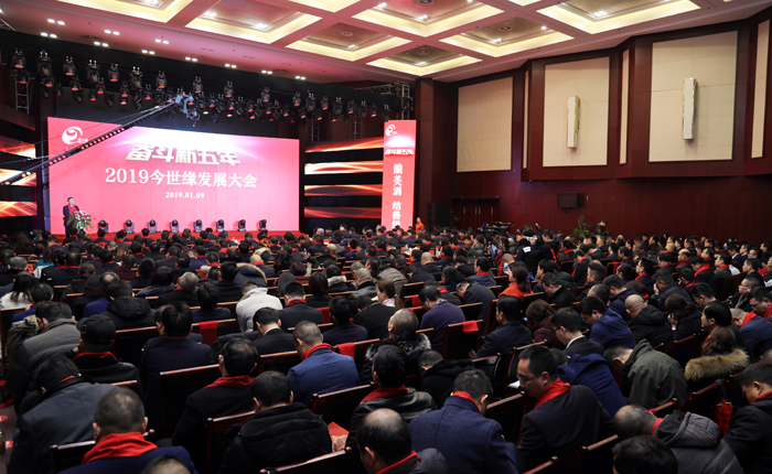 1月9日上午,以“奮斗新五年”為主題的2019年今世緣發(fā)展大會(huì )在公司會(huì )議中心隆重召開(kāi)。公司黨委書(shū)記、董事長(cháng)、總經(jīng)理周素明在會(huì )上發(fā)表題為“穩中求進(jìn)新五年進(jìn)中向好譜新篇”的主旨講話(huà)。公司副董事長(cháng)、副總經(jīng)理吳建峰主持大會(huì )。公司黨委副書(shū)記魯正波,黨委副書(shū)記、副總經(jīng)理倪從春,副總經(jīng)理羊棟,副總經(jīng)理、董事會(huì )秘書(shū)王衛東,副總經(jīng)理方志華、胡躍吾、李維群,近400名來(lái)自全國各地的經(jīng)銷(xiāo)商、供應商、廣告商、投資方代表出席大會(huì ),共話(huà)今世緣在更高層面、更高平臺發(fā)展大計。