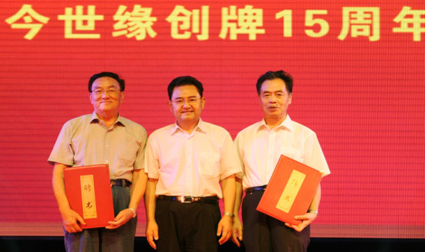 2011年8月,莊名揚先生在今世緣創(chuàng )牌15周年慶典儀式上,被授予“今世緣榮譽(yù)顧問(wèn)”。時(shí)任全國政協(xié)常委、全國政協(xié)社會(huì )和法制委員會(huì )副主任,原江蘇省省長(cháng)季允石(中)為莊名揚和著(zhù)名白酒專(zhuān)家沈怡方(左一)頒發(fā)聘書(shū)。