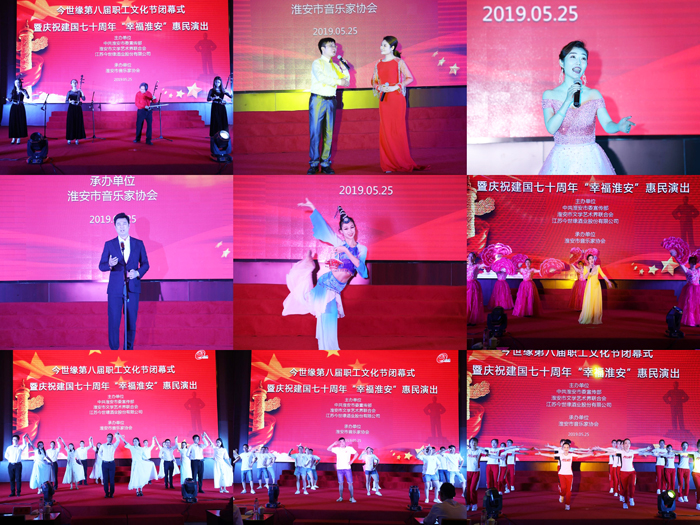 閉幕式上,由市委宣傳部、市文聯(lián)、今世緣酒業(yè)主辦,市音樂(lè )家協(xié)會(huì )承辦的慶祝建國70周年“幸?;窗病被菝裱莩鰸馇樯涎?。市音樂(lè )家協(xié)會(huì )的演員們表演的二胡合奏《新賽馬》、女聲獨唱《如夢(mèng)令》、男聲獨唱《我的愛(ài)人你可聽(tīng)見(jiàn)》、女聲獨唱《絲綢之路》、雙人舞《兄弟》、薩克斯獨奏《這就是愛(ài)》,公司質(zhì)量管理黨支部表演的開(kāi)場(chǎng)舞《護花使者》、研究院黨支部表演的舞蹈《愛(ài)的華爾茲》、包裝黨支部表演的舞蹈《厲害了,我的國》等精彩的節目,為公司員工奉獻了一場(chǎng)豐富的文化大餐。在全體人員齊唱《我和我的祖國》中,今世緣第八屆職工文化節圓滿(mǎn)閉幕。