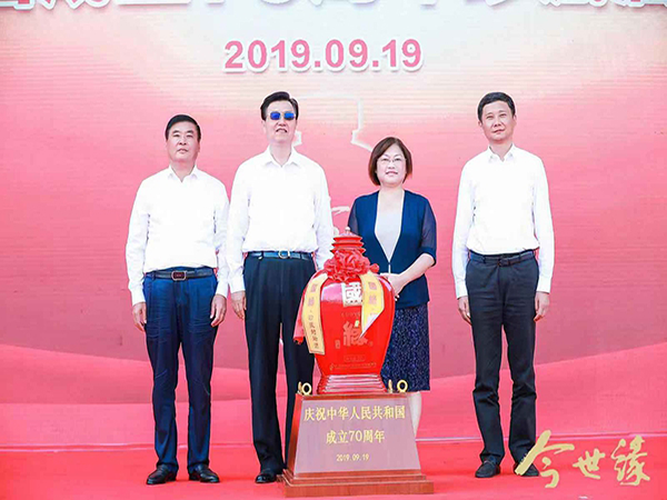 在今世緣美酒銀行前,江蘇省政協(xié)前副主席羅一民,黨的十九大代表、中共漣水縣委書(shū)記王向紅,黨的十九大代表、民政部“孺子牛獎”獲得者李銀江,漣水地方政府領(lǐng)導,今世緣酒業(yè)經(jīng)銷(xiāo)商代表,今世緣酒業(yè)員工代表,共同為參加2019今世緣全國集體婚禮的70對新人祝福,見(jiàn)證今世緣美酒銀行開(kāi)業(yè)慶典。
