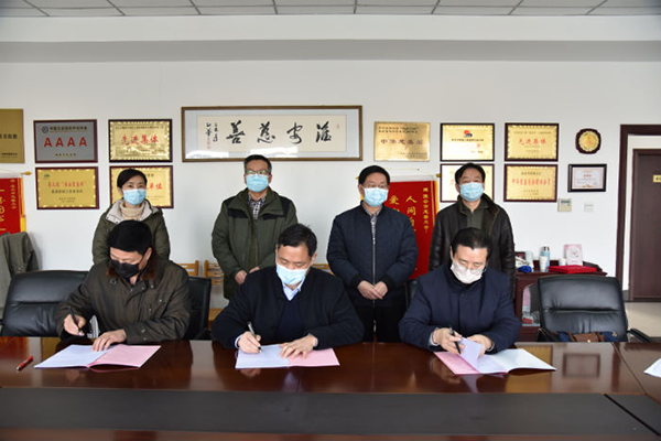 江蘇今世緣酒業(yè)股份有限公司副總經(jīng)理王衛東(前排中)代表今世緣簽署捐款協(xié)議書(shū)