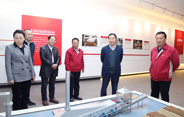 市應急管理局黨組書(shū)記、局長(cháng)劉愛(ài)國在(右二)“中國白酒智能化釀酒示范車(chē)間”