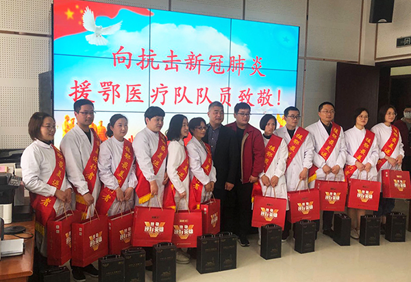 4月8日,淮安市出征湖北的74名醫護人員圓滿(mǎn)完成援鄂抗疫任務(wù),并結束為期14天的集中休養后載譽(yù)而歸。今世緣酒業(yè)淮安大區為他們贈送特制的國緣V9,表達家鄉今世緣人的敬意?;窗苍踽t療隊員代表深情講述了不遠千里、馳援湖北的戰“疫”故事。