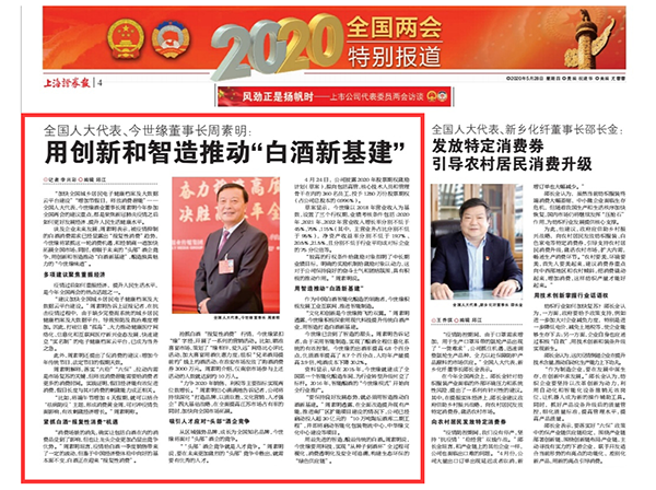 編者按:5月28日,上海證券報刊出《全國人大代表、今世緣董事長(cháng)周素明:用創(chuàng )新推動(dòng)“白酒新基建”》,現全文轉載如下:
