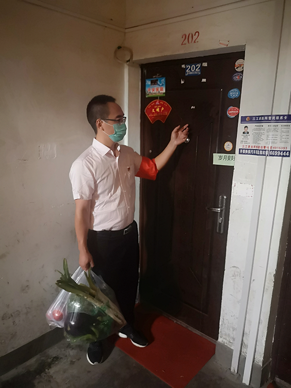 7月30日,被選為第一批“黨員志愿者”的李建州準時(shí)到達社區。按照社區“一個(gè)人負責一個(gè)單元”的要求,李建州佩戴好黨員徽章、醫用口罩和“志愿者”紅袖章,按照樓層號,將社區配好的蔬菜一一送到居民家中。送完菜之后,他回到居住點(diǎn),一邊線(xiàn)上開(kāi)展工作,一邊等待社區通知。根據社區要求,如果居民有取快遞、買(mǎi)藥等臨時(shí)性需求,志愿者必須馬上到崗。晚上9點(diǎn),李建州再次到達社區,幫助居民將家里的垃圾接收后,放到指定的垃圾回收點(diǎn)。夜色中,望著(zhù)空空蕩蕩的大街,拖著(zhù)疲憊的身體返程,一天的志愿服務(wù)才算完成。