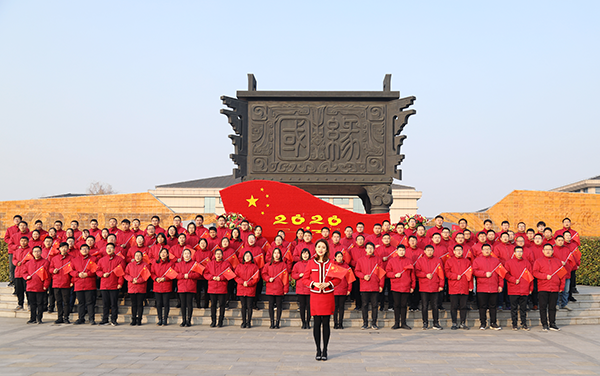 今世緣酒業(yè)員工在企業(yè)文化廣場(chǎng)放歌《我的祖國》。