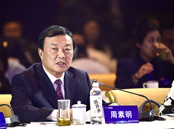 圖為今世緣酒業(yè)股份有限公司黨委書(shū)記、董事長(cháng)周素明在2020中國企業(yè)家博鰲論壇圓桌論壇發(fā)言。