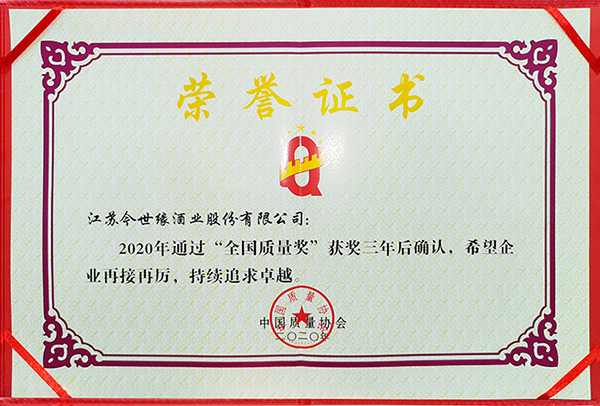 今世緣自2017年榮獲“全國質(zhì)量獎”后,以持續宣貫和運用卓越績(jì)效標準為主線(xiàn),聘請中國質(zhì)量協(xié)會(huì )專(zhuān)家,對中層以上管理人員開(kāi)展企業(yè)內部自評師培訓,提高自評師評審技巧和能力,并結合公司實(shí)際,開(kāi)展了系統的自我評價(jià)。今世緣遵循新發(fā)展理念,以高質(zhì)量發(fā)展為導向,以信息化建設、精益化管理為抓手,以釀酒智能化、營(yíng)銷(xiāo)數字化為載體,著(zhù)力打造智慧工廠(chǎng),促進(jìn)了公司由優(yōu)秀向卓越邁進(jìn)。未來(lái),圍繞“釀美酒,結善緣”的企業(yè)使命,今世緣將再接再厲,不斷壯大發(fā)展自身,同時(shí)發(fā)揮行業(yè)示范作用,繼續倡導和踐行以卓越為引領(lǐng),以質(zhì)量創(chuàng )品牌,以創(chuàng )新促發(fā)展,助力企業(yè)實(shí)現高質(zhì)量發(fā)展。
