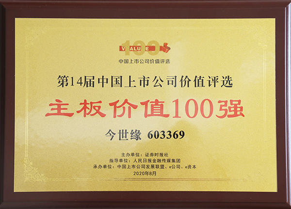 2020年8月28日,今世緣榮獲中國上市公司“主板價(jià)值100強”。