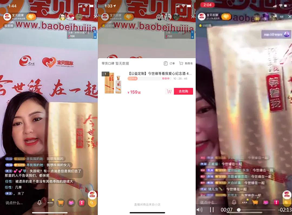 為回饋關(guān)注尋人公益事業(yè)的熱心用戶(hù),直播時(shí)還會(huì )通過(guò)抽獎贈送“今世緣·等著(zhù)我”愛(ài)心紀念酒。每次抽獎時(shí)“今世緣·在一起”的評論瀑布式刷屏。