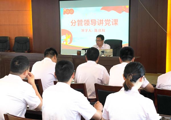 7月13日,公司黨委書(shū)記、董事長(cháng)周素明為銷(xiāo)售服務(wù)黨支部全體黨員講授黨史學(xué)習教育專(zhuān)題黨課。要求銷(xiāo)售服務(wù)黨支部全體黨員當好公司高質(zhì)量發(fā)展的好參謀、好幫手,始終牢記初心使命,積極主動(dòng)擔當作為,不辜負公司黨委,不辜負前方將士,不辜負經(jīng)銷(xiāo)商等相關(guān)方。聚焦高質(zhì)量,聚力新跨越,為公司百億征程發(fā)揮關(guān)鍵作用,書(shū)寫(xiě)引領(lǐng)市場(chǎng)發(fā)展新榮光。公司黨委副書(shū)記、監事會(huì )主席倪從春,副總經(jīng)理胡躍吾,以及銷(xiāo)售服務(wù)黨支部黨員參加學(xué)習,縣委巡回指導組成員列席專(zhuān)題黨課。銷(xiāo)售服務(wù)黨支部書(shū)記孫萬(wàn)軍主持專(zhuān)題黨課學(xué)習。