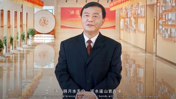 今世緣董事長(cháng)周素明通過(guò)視頻介紹中國“緣文化”。(圖片由辛揚提供)