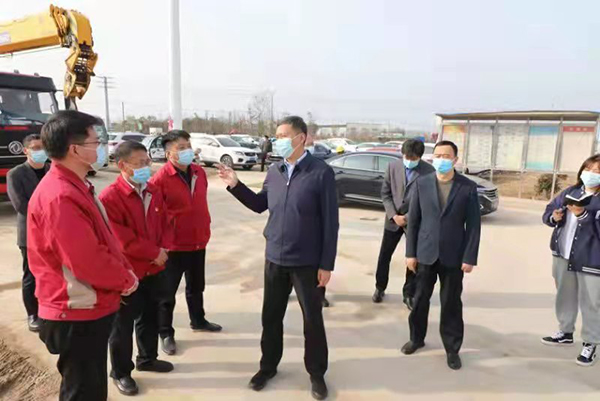 3月15日,縣委書(shū)記時(shí)勇在今世緣技改項目現場(chǎng)督導疫情防控工作。
