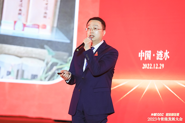 今世緣酒業(yè)副總經(jīng)理胡躍吾作2023年度營(yíng)銷(xiāo)工作報告。