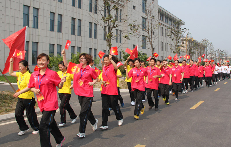 如意湖畔春風(fēng)蕩漾,酒旗飄揚。開(kāi)幕式后隨即舉行了職工健步長(cháng)跑活動(dòng)。各代表隊在周素明與公司領(lǐng)導班子成員的帶領(lǐng)下,意氣風(fēng)發(fā)、氣宇軒昂的奔向美好的明天。激越嘹亮的口號回蕩在緣分星空,堅定整齊的步伐丈量著(zhù)百億征程!