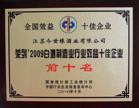 10月22日,第七屆全國工業(yè)重點(diǎn)行業(yè)效益十佳企業(yè)高峰論壇在四川成都舉行,江蘇今世緣酒業(yè)有限公司榮列“2009年中國白酒制造業(yè)行業(yè)效益十佳企業(yè)”,這也是繼2008年躋身行業(yè)“效益十佳”行列后,蟬聯(lián)這一殊榮。