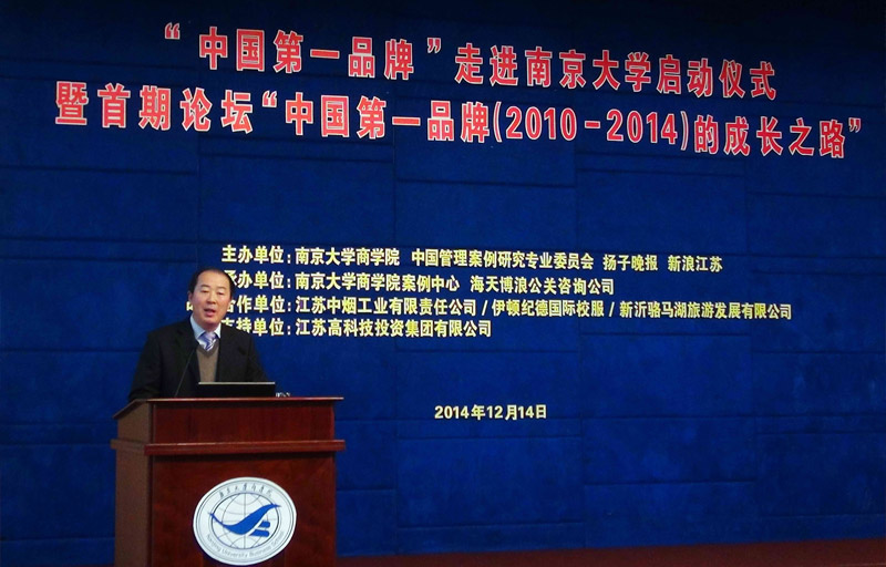 12月14日,“中國第一品牌”走進(jìn)南京大學(xué)啟動(dòng)儀式暨首期論壇“中國第一品牌(2010-2014)的成長(cháng)之路”在南京大學(xué)安中樓報告廳舉行。著(zhù)名經(jīng)濟學(xué)家、原南京大學(xué)黨委書(shū)記洪銀興教授,南京大學(xué)黨委常委、副校長(cháng)鄒亞軍,南京大學(xué)商學(xué)院執行院長(cháng)沈坤榮教授,江蘇省旅游局副局長(cháng)經(jīng)圣賢,江蘇省工商局商標處處長(cháng)馮興漢,揚子晚報總編輯王文堅,新浪江蘇總編輯馮曉婷等共同為論壇揭牌。公司紀委書(shū)記、副總經(jīng)理嚴漢忠應邀出席論壇并發(fā)表演講。